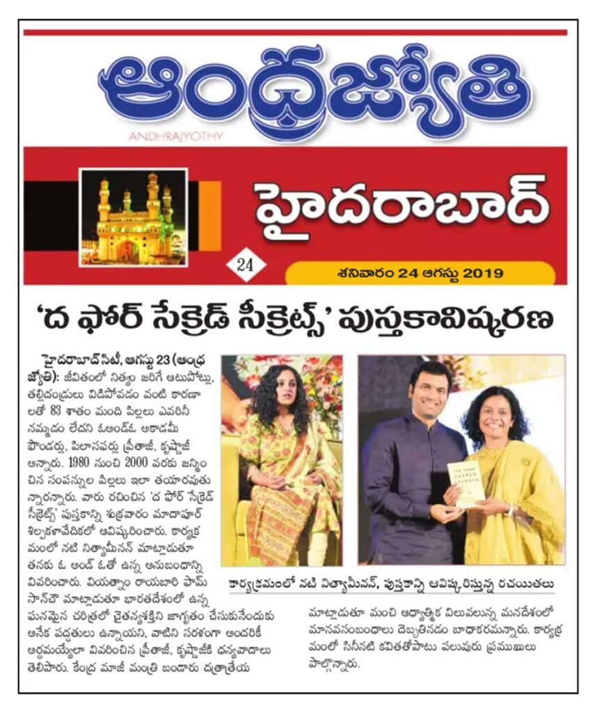 インド各雑誌、メディアに掲載されました。政治指導者Bandaru Dattatreya、Nitha Menon女優、A guest女優、Roja女優、Kavitha女優、起業家慈善家Neelima Aryaなど各著名人が出版イベントに参加。
